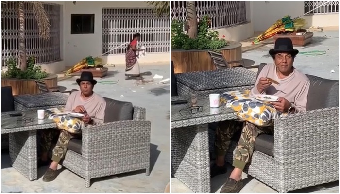 ਇਸ ਵੀਡੀਓ ਨੂੰ ਸ਼ੇਅਰ ਕਰਦਿਆਂ ਧਰਮਿੰਦਰ ਨੇ ਕੈਪਸ਼ਨ ‘ਚ ਲਿਖਿਆ, ”ਇਹ ਸਭ ਕੁਝ ਉਸ ਨੇ ਦਿੱਤਾ ਹੈ, ਜੋ ਚੁਪਚਾਪ ਇਕ ਦਿਨ ਲੈ ਜਾਵੇਗਾ। ਜ਼ਿੰਦਗੀ ਬਹੁਤ ਖੂਬਸੂਰਤ ਹੈ ਦੋਸਤੋਂ, ਇਸ ਨੂੰ ਸ਼ਾਨਦਾਰ ਢੰਗ ਨਾਲ ਜਿਓ। ਚੇਅਰ ਅੱਪ।”ਦੱਸ ਦਈਏ ਕਿ ਫੈਨਜ਼ ਧਰਮਿੰਦਰ ਦੇ ਇਸ ਵੀਡੀਓ ਨੂੰ ਕਾਫੀ ਪਸੰਦ ਕੀਤਾ ਜਾ ਰਿਹਾ ਹੈ ਅਤੇ ਫੈਨਜ਼ ਵੱਖ-ਵੱਖ ਤਰ੍ਹਾਂ ਦੇ ਕੁਮੈਂਟਸ ਕਰ ਰਹੇ ਹਨ। ਧਰਮਿੰਦਰ ਦਾ ਅਸਲੀ ਨਾਂ ਧਰਮ ਸਿੰਘ ਦਿਓਲ ਹੈ। ਉਨ੍ਹਾਂ ਨੇ ਆਪਣਾ ਬਚਪਨ ਸਾਹਨੇਵਾਲ ‘ਚ ਗੁਜਾਰਿਆ ਹੈ।ਧਰਮਿੰਦਰ ਦੇ ਫ਼ਿਲਮ ਕਰੀਅਰ ਦੀ ਗੱਲ ਕੀਤੀ ਜਾਵੇ ਤਾਂ ਉਨ੍ਹਾਂ ਨੇ ਕਈ ਹਿੱਟ ਫ਼ਿਲਮਾਂ ਬਾਲੀਵੁੱਡ ਨੂੰ ਦਿੱਤੀਆਂ ਹਨ ਅਤੇ ਇਹ ਪਰਿਵਾਰ ਲਾਈਮ ਲਾਈਟ ਤੋਂ ਕਾਫੀ ਦੂਰ ਰਹਿੰਦਾ ਹੈ । ਬਾਲੀਵੁੱਡ ਦੀਆਂ ਪਾਰਟੀਆਂ ‘ਚ ਅਕਸਰ ਇਹ ਪਰਿਵਾਰ ਦੂਰੀ ਬਣਾਈ ਰੱਖਦਾ ਹੈ ।