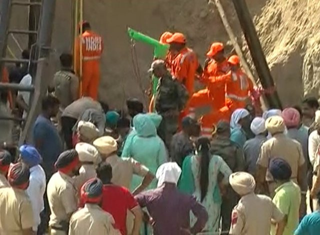 ਸੰਗਰੂਰ: ਬੋਰਵੈੱਲ ਵਿੱਚ ਫਸੇ ਫ਼ਤਹਿਵੀਰ ਨੂੰ ਬਾਹਰ ਕੱਢਣ ਦਾ ਬਚਾਅ ਕਾਰਜ ਲੋੜ ਤੋਂ ਵੱਧ ਸਮਾਂ ਲੈ ਰਿਹਾ ਹੈ। ਬੱਚੇ ਨੂੰ ਬੋਰਵੈੱਲ ਵਿੱਚੋਂ ਬਾਹਰ ਕੱਢਣ ਲਈ ਅਸਫਲ ਰਹੀ NDRF ਟੀਮ ਨੇ ਆਪਣੇ ਹੱਥ ਖੜ੍ਹੇ ਕਰ ਲਏ ਹਨ। ਇਸ ਲਈ ਹੁਣ ਫੌਜ ਨੂੰ ਬੁਲਾਇਆ ਗਿਆ ਹੈ ਤੇ ਫੌਜ ਨੇ ਮੋਰਚਾ ਸਾਂਭ ਲਿਆ ਹੈ। ਉੱਧਰ ਕੈਪਟਨ ਅਮਰਿੰਦਰ ਸਿੰਘ ਨੇ 5 ਦਿਨਾਂ ਬਾਅਦ ਇੱਕ ਤੋਂ ਬਾਅਦ ਇੱਕ ਟਵੀਟ ਕੀਤੇ ਹਨ।