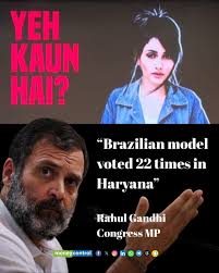 ਚੰਡੀਗੜ੍ਹ- ਕਾਂਗਰਸ ਦੇ ਸੰਸਦ ਮੈਂਬਰ ਅਤੇ ਲੋਕ ਸਭਾ ਵਿੱਚ ਵਿਰੋਧੀ ਧਿਰ ਦੇ ਨੇਤਾ ਰਾਹੁਲ ਗਾਂਧੀ ਨੇ ਹਰਿਆਣਾ ਵਿਧਾਨ ਸਭਾ ਚੋਣਾਂ ਵਿੱਚ ਫਰਜ਼ੀ ਵੋਟਿੰਗ ਦਾ ਸਨਸਨੀਖੇਜ਼ ਦੋਸ਼ ਲਗਾਇਆ ਹੈ। ਉਨ੍ਹਾਂ ਨੇ ਬੁੱਧਵਾਰ ਨੂੰ ਇੱਕ ਪ੍ਰੈਸ ਕਾਨਫਰੰਸ ਵਿੱਚ ਦਾਅਵਾ ਕੀਤਾ ਕਿ ਰਾਜ ਵਿੱਚ ਲਗਪਗ 25 ਲੱਖ ਫਰਜ਼ੀ ਵੋਟਰਾ ਦੀ ਮਦਦ ਨਾਲ ਭਾਜਪਾ ਨੇ ਚੋਣ ਜਿੱਤੀ। ਰਾਹੁਲ ਨੇ ਕਿਹਾ ਕਿ ਹਰਿਆਣਾ ਵਿੱਚ ਹਰ ਅੱਠ ਵਿੱਚੋਂ ਇੱਕ ਵੋਟਰ ਫਰਜ਼ੀ ਸੀ ਅਤੇ ਚੋਣ ਕਮਿਸ਼ਨ ਨੇ ਭਾਜਪਾ ਦੀ ਜਿੱਤ ਯਕੀਨੀ ਬਣਾਉਣ ਵਿੱਚ ਮਦਦ ਕੀਤੀ। ਪ੍ਰੈਸ ਵਾਰਤਾ ਦੌਰਾਨ ਰਾਹੁਲ ਗਾਂਧੀ ਨੇ ਬ੍ਰਾਜ਼ੀਲ ਦੀ ਇੱਕ ਮਾਡਲ ਦੀ ਤਸਵੀਰ ਦਿਖਾਉਂਦੇ ਹੋਏ ਕਿਹਾ ਕਿ ਉਸਦੀ ਫੋਟੋ ਦੀ ਵਰਤੋਂ ਹਰਿਆਣਾ ਵਿੱਚ ਵੱਖ-ਵੱਖ ਨਾਵਾਂ ਨਾਲ ਵੋਟਰ ਕਾਰਡ ਬਣਾਉਣ ਲਈ ਕੀਤੀ ਗਈ ਸੀ।