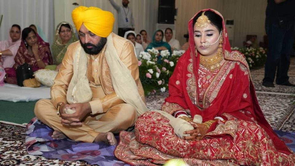 ਪੰਜਾਬ ਦੇ ਮੁੱਖ ਮੰਤਰੀ ਭਗਵੰਤ ਮਾਨ ਦੇ ਵਿਆਹ ਦੇ ਬੰਧਨ ‘ਚ ਬੱਝ ਗਏ ਹਨ। ਉਸ ਨੇ 32 ਸਾਲਾ ਡਾ: ਗੁਰਪ੍ਰੀਤ ਕੌਰ ਨਾਲ ਵਿਆਹ ਕਰਵਾ ਲਿਆ। ਪੰਜਾਬ ਦੇ ਸੀਐਮ ਹਾਊਸ ਵਿੱਚ ਹੋਏ ਵਿਆਹ ਵਿੱਚ ਦਿੱਲੀ ਦੇ ਮੁੱਖ ਮੰਤਰੀ ਅਰਵਿੰਦ ਕੇਜਰੀਵਾਲ ਨੇ ਲਾੜੇ ਦੇ ਵੱਡੇ ਭਰਾ ਦੀ ਰਸਮ ਅਦਾ ਕੀਤੀ। ਵਿਆਹ ‘ਚ ਦੋਹਾਂ ਦੇ ਪਰਿਵਾਰ ਤੋਂ ਇਲਾਵਾ ਸੀਮਤ ਗਿਣਤੀ ‘ਚ ਮਹਿਮਾਨ ਸ਼ਾਮਲ ਸਨ। ਤੁਹਾਡੇ ਰਾਜ ਸਭਾ ਮੈਂਬਰ ਰਾਘਵ ਚੱਢਾ ਵਿਆਹ ਦੇ ਪ੍ਰਬੰਧਾਂ ਨੂੰ ਸੰਭਾਲ ਰਹੇ ਹਨ।