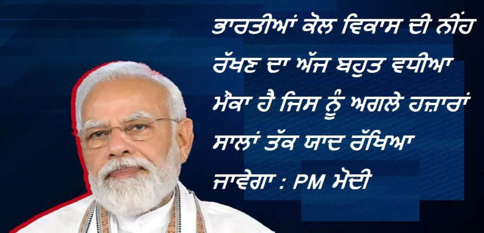 ਭਾਰਤੀਆਂ ਕੋਲ ਵਿਕਾਸ ਦੀ ਨੀਂਹ ਰੱਖਣ ਦਾ ਅੱਜ ਬਹੁਤ ਵਧੀਆ ਮੌਕਾ ਹੈ ਜਿਸ ਨੂੰ ਅਗਲੇ ਹਜ਼ਾਰਾਂ ਸਾਲਾਂ ਤੱਕ ਯਾਦ ਰੱਖਿਆ ਜਾਵੇਗਾ।